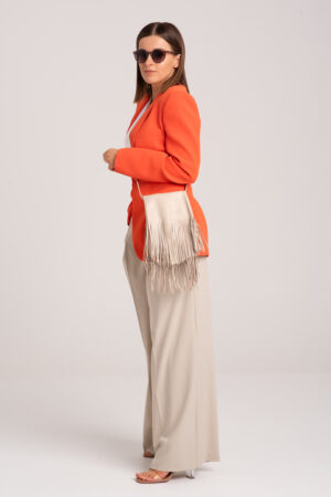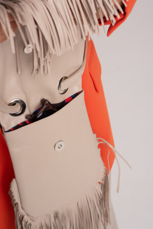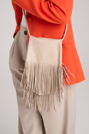 Mała śmietankowa skórzana torebka z frędzlami – BEZWSTYDNA