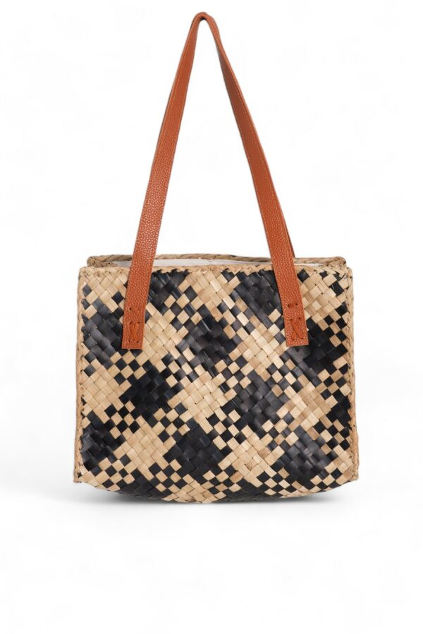 Shopper z liści palmowych jest nie tylko stylowy, ale także wyjątkowo trwały, co czyni go idealnym towarzyszem na zakupy, wypady na plażę czy pikniki. Naturalny materiał nadaje torbie unikalny charakter i sprawia, że każdy egzemplarz jest nieco inny, co podkreśla jej wyjątkowość.
