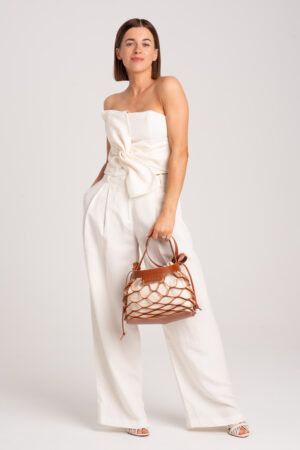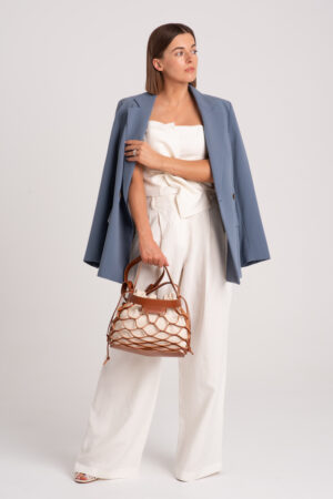 Skórzany koszyk „Zmysłowa” wykonany ze skóry naturalnej z bawełnianym wkładem. Ta wyjątkowa kombinacja materiałów nie tylko podkreśla jej stylowy design, ale również zapewnia wygodę użytkowania.